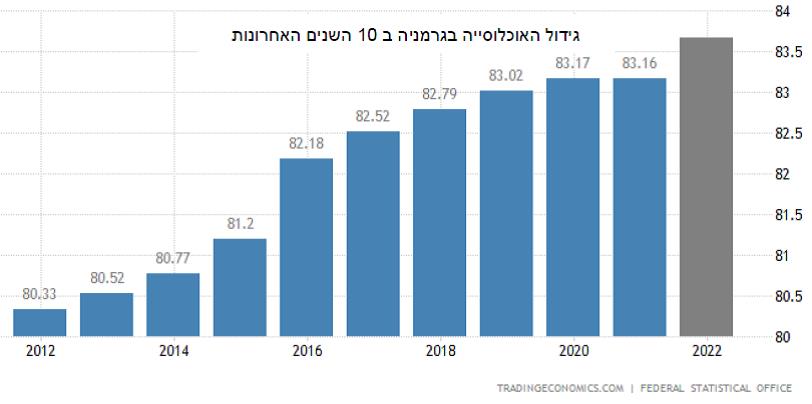אוכלוסיית גרמניה גדלה במהלך החלק הראשון של שנת 2022 ב- 843,000 אלף איש, כאשר היא מגיעה לשיא של 84 מיליון תושבים (גידול של 1% בחצי שנה).