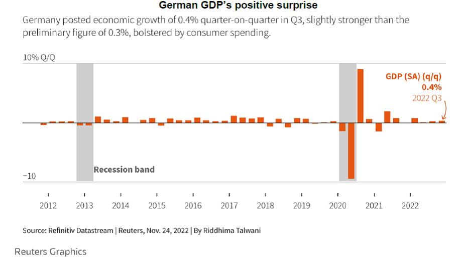 הנתונים מראים כי הכלכלה הגרמנית צמחה ב – 0.4% עד לרבעון השלישי לשנת 2022 וב-1.3% בחישוב השנתי.