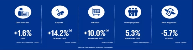 נתונים כלכליים עיקריים בגרמניה אל מול השנה הקודמת, מעודכן לדצמבר 2022 (KPMG)