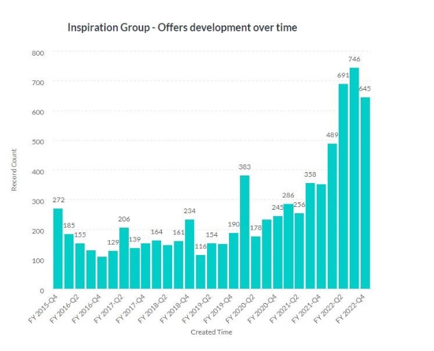 מצד שני, תמונת ההיצע לא השתנתה, המוכרים לא מעוניינים לוותר על הרווחים שעשו על הנייר ומבקשים למכור במחירי 2021. כל זה בא לידי ביטוי ב"חיי מדף" ארוכים יותר לנכסים שמוצעים ובהיצע נכסים גדול יותר אותם אנו מנתחים ובוחנים כפי שתוכלו לראות בגרף הבא –