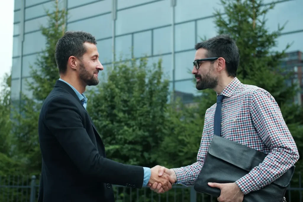 לחיצת יד עסקית על רקע בניין